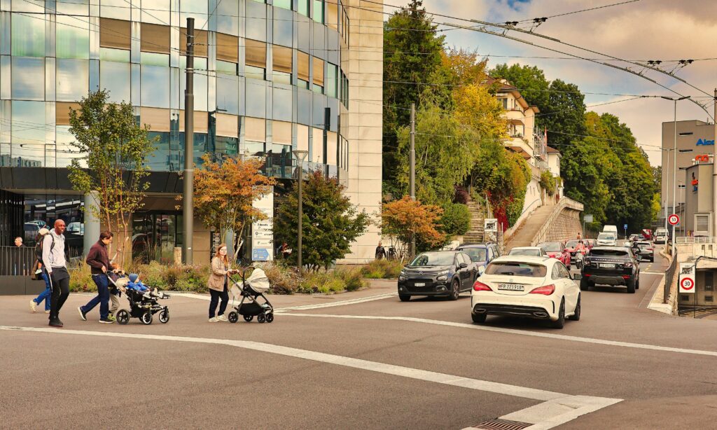 Die Begegnungszone verkörpert eine neue Mobilitätskultur. Auf die Koexistenz der verschiedenen Verkehrsträger ausgerichtet, lädt dieses Verkehrsregime zum Flanieren und zur Begegnung auf der Strasse ein.